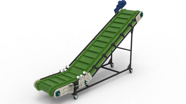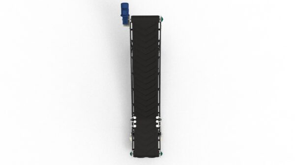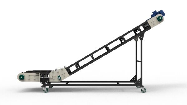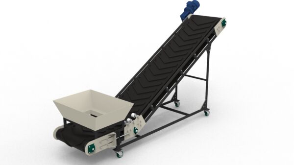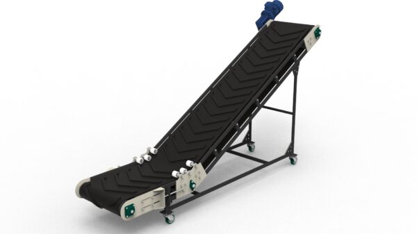 По сути, оборудование представляет собой Г-образный конвейер, который был перевернут на 180о и переоборудован для повышенной нагрузки в нижней части. Для безопасной транспортировки сыпучих материалов или мелких изделий полотно транспортера снабжается бортами, а также имеет специальный рельеф. Это могут быть направленные шевроны, горизонтальные ребра или другие объемные элементы, которые предотвращают сбивание перемещаемых материалов в одну кучу и задают им нужное направление движения.